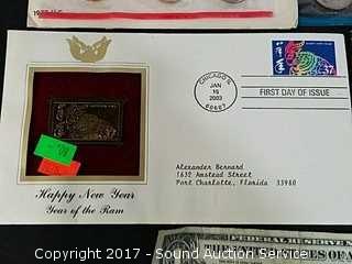 Stamp is FDI 2003, Happy New Year of the Ram. Mint set is 1972 U.C. Proof set 1961-1987 coins.