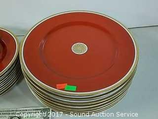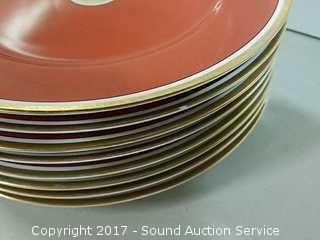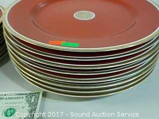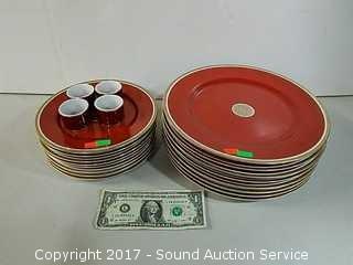 Includes: (8) dinner plates, (8) snack plates and (4) napkin rings. A few small chips, refer to photos.