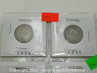 Lot #0144: (4) 1904-1911 V-Nickels