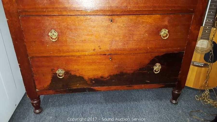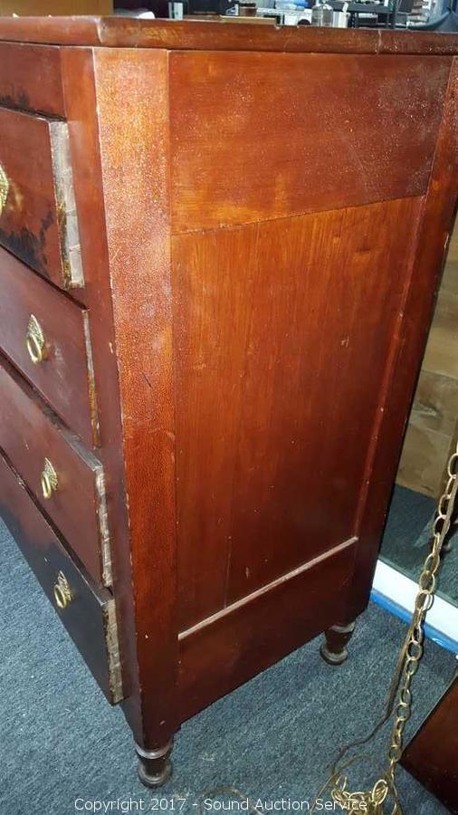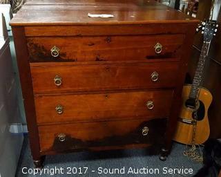 Lot #0012: Antique 4 Drawer Highboy Dresser