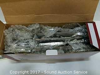 Comes in original box. Silverplated with antique accents. Includes 4 of each shape, rectangular 1.5" x 2", oval 1-1/4" x 2" and round 1.5" diameter openings.