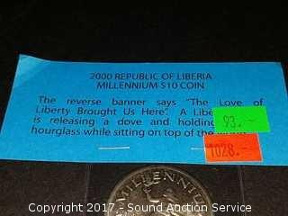Lot #0093: Mexican Silver Dollar, $10 Liberia Coin & Others