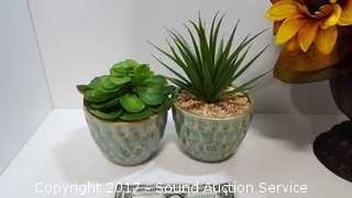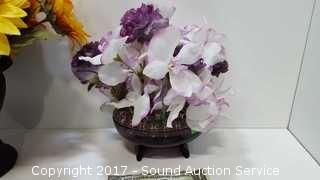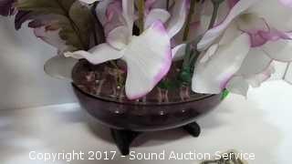 Lot #0035: Potted Silk Flower & Cactus w/Amethyst Flower Frog