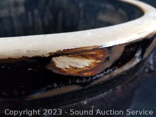 Some scuffs, wear to enamel finish. Don't see any major issues. 16.5" H x 14.25" dia.