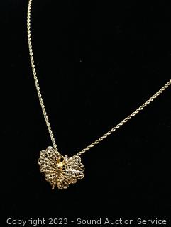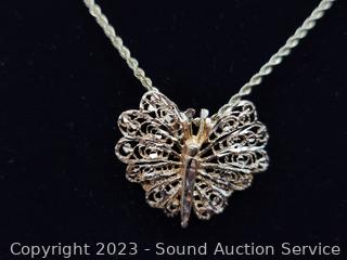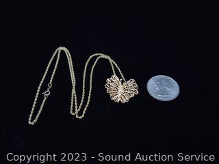 Lot #0170: 14k Gold Twisted Rope Chain Necklace w/Butterfly Pendant