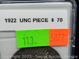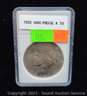 Lot #0113: 1922 Uncirculated? 90% Silver Peace Dollar