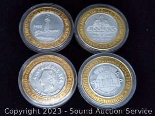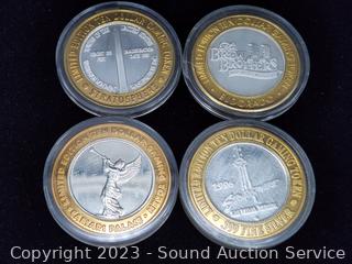Lot #0123: (4) .999 Fine Silver Ten Dollar Gaming Tokens