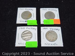 Lot #0150: 4 Antique 1901-11 V-Nickels