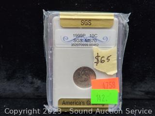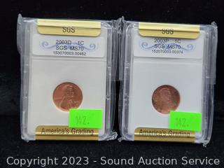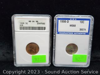 2003P 1c MS70, 2003D 1c MS70, 109 VDB 1c MS64, 1998D 1c MS68, 1999P 10c MS70. ATTN: We are not coin or currency experts or graders, please use your own judgement when bidding.