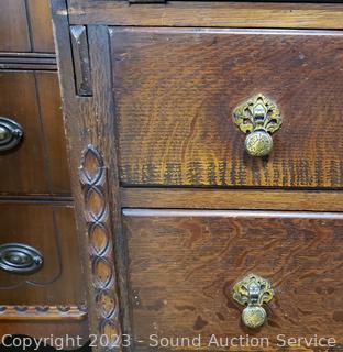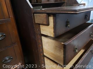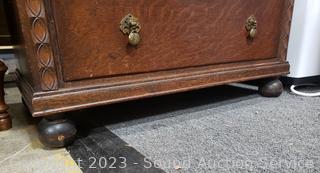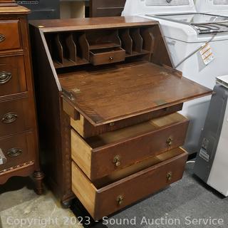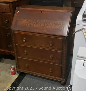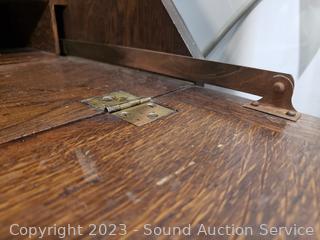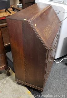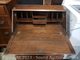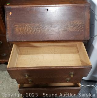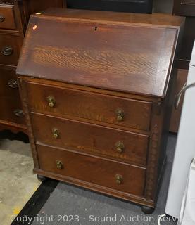 Lot #0042: Antique Quarter Sawn Oak 3-Drawer Secretary Desk