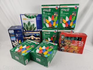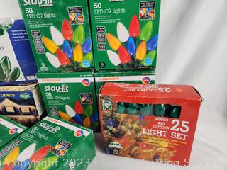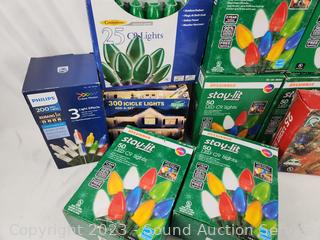 (6) 50 LED C9 lights, (2) 25 C9 lights, 300 Icicle light set, 200 mini light set. All work.
