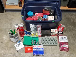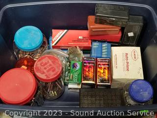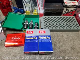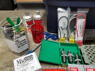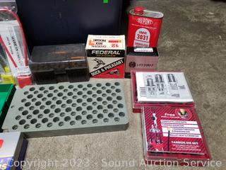 Powder, dies, shotgun shells, trigger locks, casings & more. Refer to photos for lot contents.