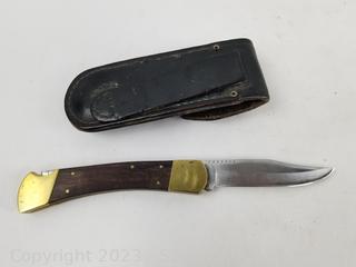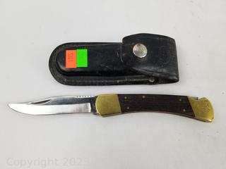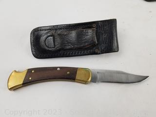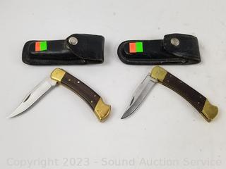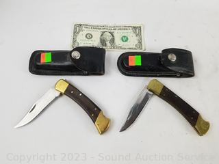 Lot #0240: Buck & Kabar Folding Knives w/Leather Sheathes