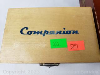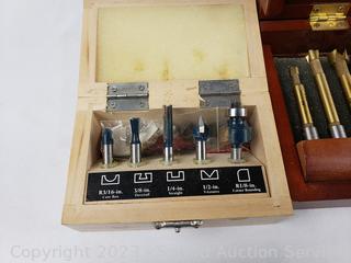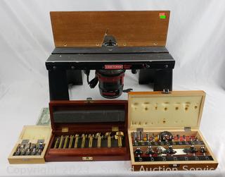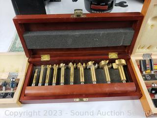 Works. 3 Sets of bits. 12" H x 18" x 13" table.