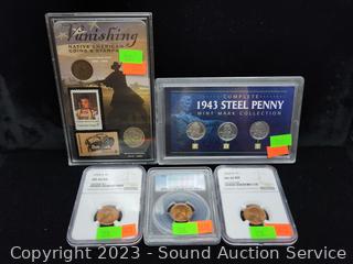 1944D 1c MS66RD, 1947S 1c MS66RD, 1954S 1c MS66RD, 1943 Steel Penny Mint Mark Collection, Vanishing Native American Coins & Stamps. ATTN: We are not coin or currency experts or graders, please use your own judgement when bidding.
