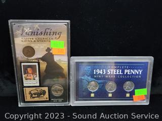 Lot #0128: Graded US Pennies, Coin & Stamp Sets