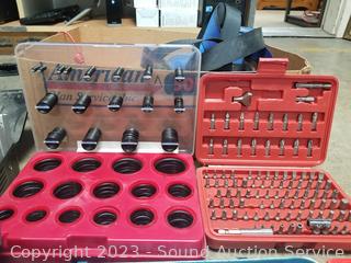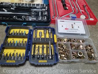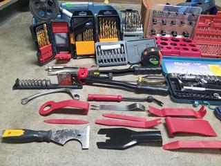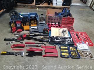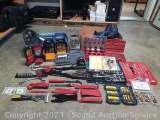 RZX riveter, drill bits, tapes, grinding pits, driver bits, O-rings & more. Refer to photos for lot contents.