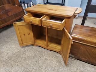 Lot #0073: Pine 2 Drawer Utility Cabinet