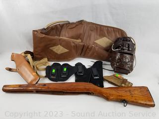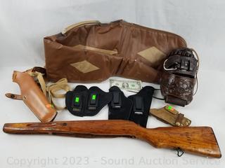 Lot #0236: Pistol Holsters, Rifle Stock & Rifle Case