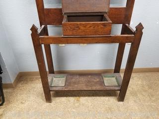 Lot #0069: Vintage Oak Mirrored Hall Tree Coat/Hat/Umbrella Rack