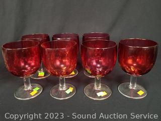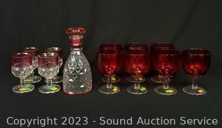 Lot #0141: 12pc Cranberry Flash Decanter & Goblet Set