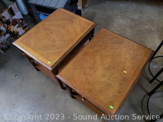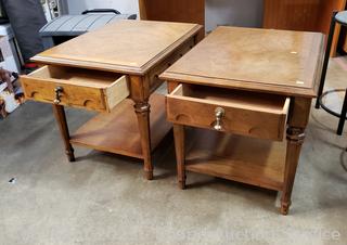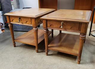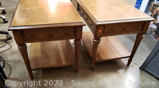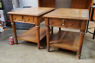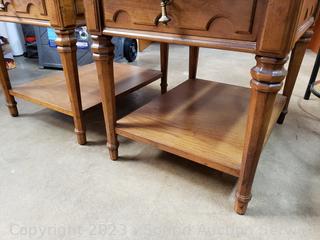 Lot #0351: 2 Drexel Single Drawer 2-Tier Side Tables