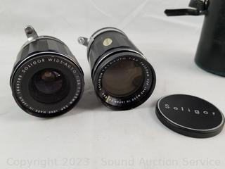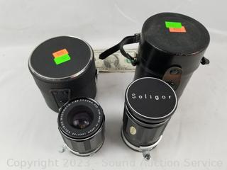Soligor Wide-Auto f=35mm 1:2.8 camera lens, Soligor Tele-Auto 1:3.5 f=3.5mm camera lens.