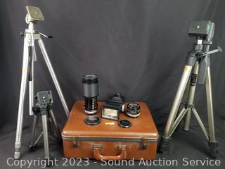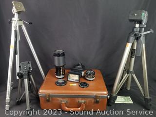 Lot #0275: 3 Camera Tripods, Lenses, Flash