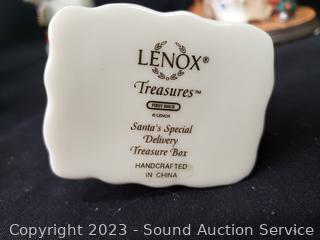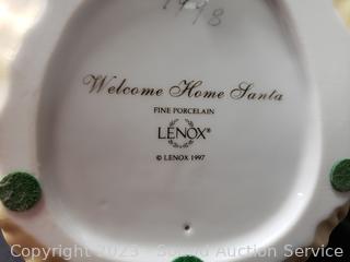 All but 1 is a Lenox, "Welcome Home Santa" w/CoA, 1 cookie jar, 1 trinket box. 3.5" to 13" tall. The one not Lenox is composite Rhodes Studio.
