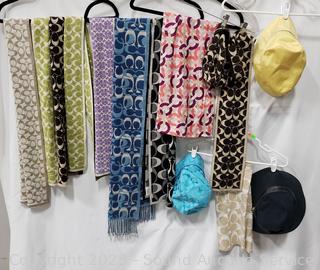 Lot #0044: 9 Coach Scarves & 3 Coach Hats S:M/L