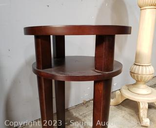 Lot #0337: Cherry 2-Tier Round Accent Table