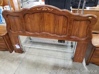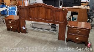 Lot #0006: Cherry Finish Twin/Full Headboard w/Matching Nightstands