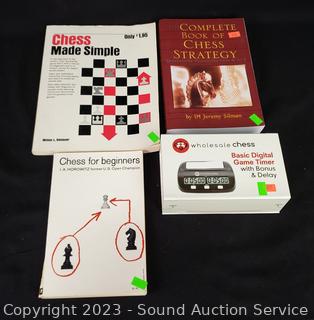 Lot #0253: Hand Carved Mexican Chess Set, Literature & Timer