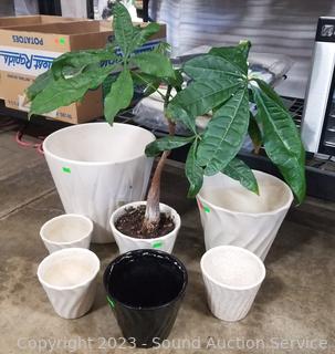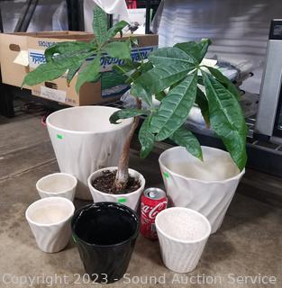 Lot #0110: Live Potted Houseplant, 7 Pottery Planter Pots