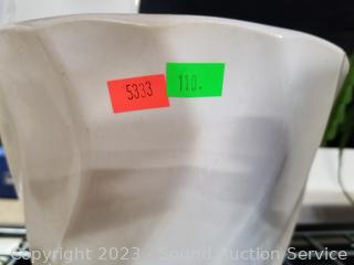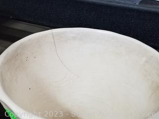 4" H x 4.5" to 10" H x 11" pots, one pot has a crack. 13" tall plant. Not sure what the plant is.