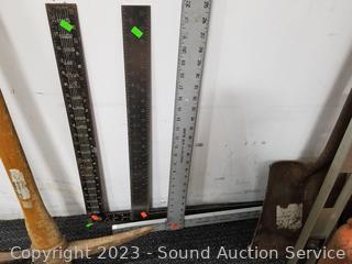 Lot #0103: 16pc Assorted Lawn & Garden Digging Tools & Carpenters Squares