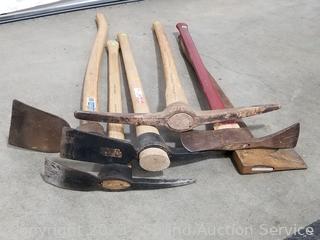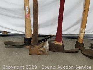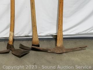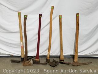 Lot #0098: 5 Mattock, Pickaxe Digging Tools & Splitting Axe