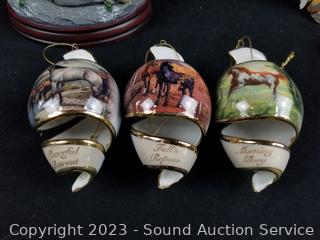 Hawthorn Village, Bradford Exchange, possibly others. All come in protective styrofoam. Approx. 4" to 10" tall. Refer to photos for titles and more information.