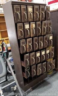 Lot #0001: Antique 30-Drawer Vertical Ledger File Cabinet