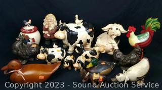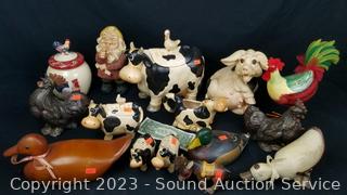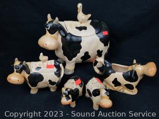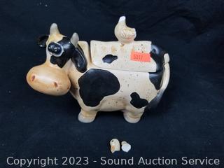 One cow container has damage, comes with piece. Refer to photos for lot contents.
