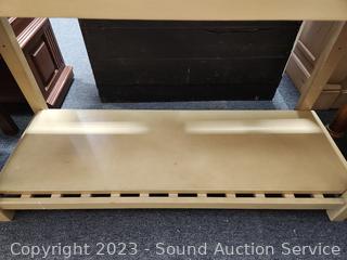 Appears to be solid wood construction, dovetail joinery. 36" x 48" x 19". Some minor wear to the finish.