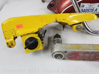 Ammco model 1050 torque wrench, 125 Enduro fuel tank, Yamaha fuel tank, handlebars.