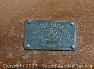 27.5" x 25" x 17". Has a plaque on the bottom tier that says Ancient Mariner. Solid wood construction, dovetail joinery.