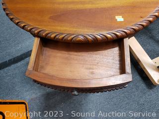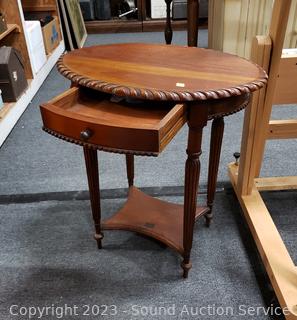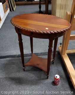 Lot #0011: Oval Single Drawer Cherry Finish 2-Tier Table