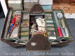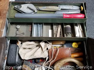 Lot #0157: Toolbox w/Assorted Carpet Lying Tools