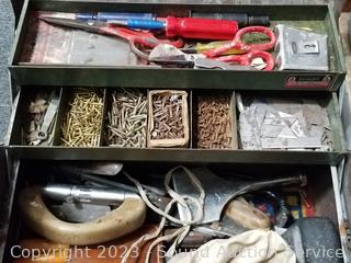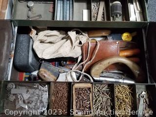 Knee kick, toe kick, stair tool ect. Refer to photos for lot contents. Kennedy 12" H x 18" W x 10".