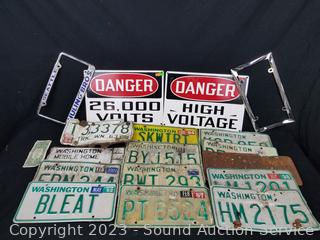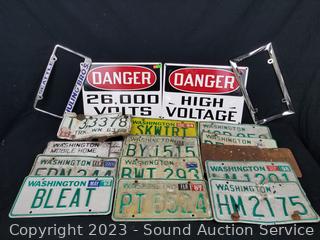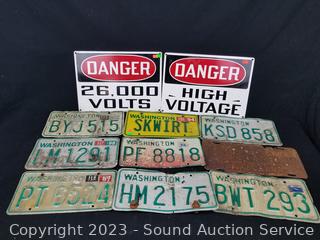 Lot #0276: Vtg. License Plates & High Voltage Signs