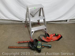 Lot #0328: 18" Elec. & 22" 18V Hedge Trimmers & 24" Step Stool