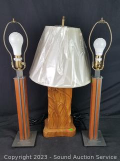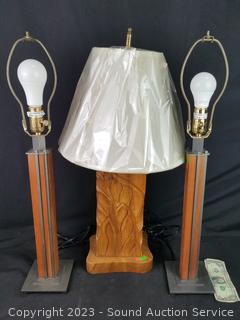 2 with out shades have 3 way switches, some dings, scuffs. All approx. 28" tall.