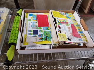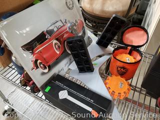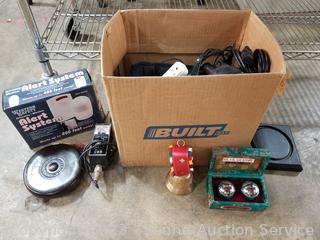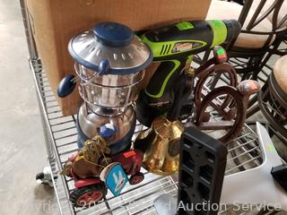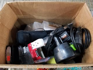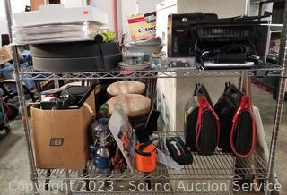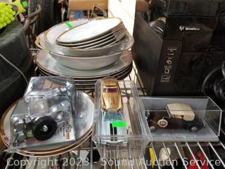 Battery chargers (all non functioning), cordless drill, printer, china and more. Cart NOT included.